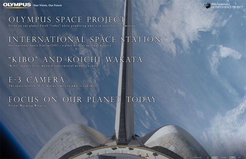 Az Olympus fennállásának kilencvenedik évfordulóját egy igazán különleges ajándékkal ünnepli: az Olympus Űrprojekttel. Ennek keretében Dr. Koichi Wakata, a Japán Űrkutatási Hivatal (Japanese Aerospace Exploration Agency – JAXA*) asztronautája a világűrben egy megbízható Olympus E-3 digitális tükörreflexes fényképezőgéppel és ZUIKO DIGITAL objektívekkel fog felvételeket készíteni a Földről. A képek a Nemzetközi Űrállomás (International Space Station – ISS) japán fejlesztésű, Kibo-nak elnevezett kutatólaboratórium-moduljában kerülnek rögzítésre. Később a képek az Olympus honlapján, valamint fotókiállításokon jelennek meg. A kék bolygóról készülő gyönyörű felvételekkel az Olympus környezetünk értékeinek fontosságára hívja fel a figyelmet. Dr. Wakatát és az E-3-at a Discovery űrrepülőgép juttatja el a Nemzetközi Űrállomásra 2009 Február 27.-én.