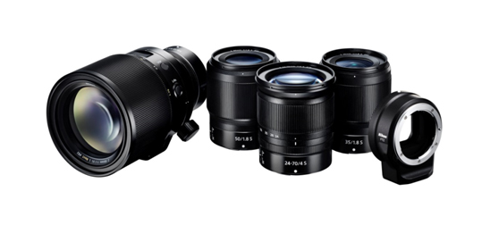A NIKKOR Z 24-70mm f/4 S általános zoom objektív, a NIKKOR Z 35mm f/1.8 S nagy látószögű fix objektív és a NIKKOR Z 50mm f/1.8 S általános fix objektív a rendszer nagyobb méretű bajonettjével használható.