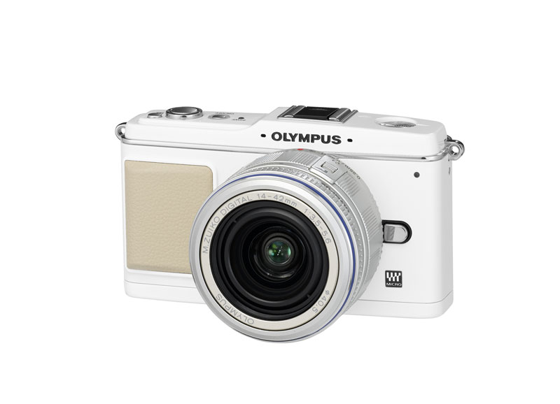 (E-P1 váz fehér színben, M. ZUIKO DIGITAL ED 14-42mm 1:3.5-5.6 objektív ezüst színben)