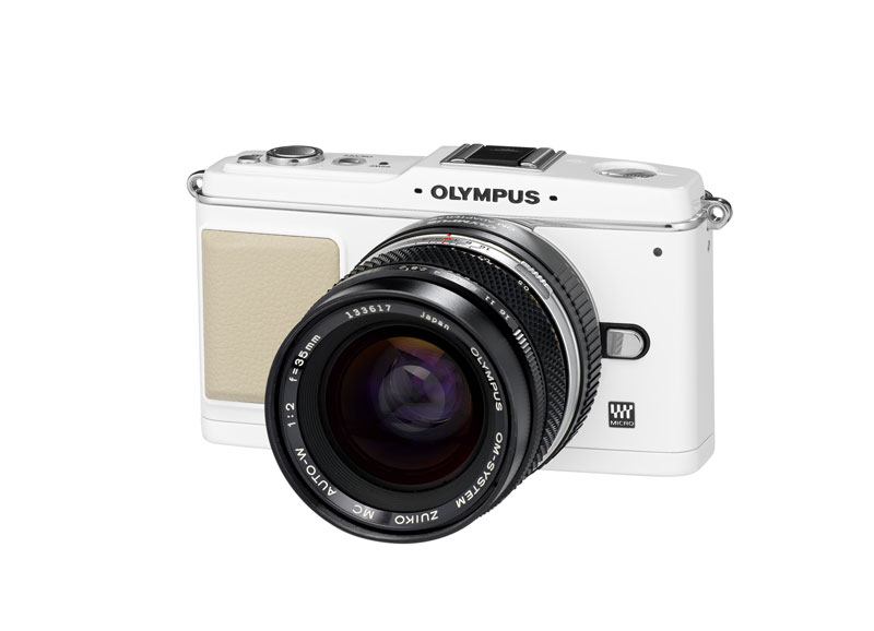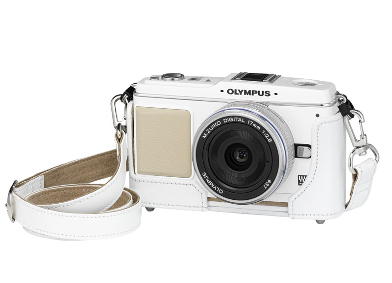 (E-P1 váz fehér színben, M. ZUIKO DIGITAL 17mm 1:2.8 Pancake fix fókuszú objektív ezüst színben, VF-1 kereső)
