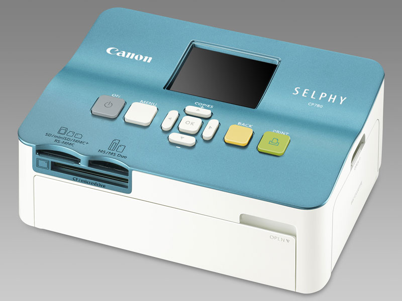 London, Egyesült Királyság, 2009. június 10. A Canon a mai napon frissíti SELPHY kompakt fotónyomtató-választékát az új SELPHY CP780 készülékkel. A SELPHY CP760 utódaként az új, ultra kompakt nyomtató jelentős előrelépést mutat a nyomtatási sebesség terén elődjéhez képest. A szórakoztató, kedvező áru, családi nyomtató felhasználóbarát módon kezelhető, és egy percen belül készít el egy kiváló, fotólabor-minőségű nyomatot. A készülék rózsaszín, kék, ezüst és fehér színekben kapható, és az opcionális akkumulátorral útközben is használható.