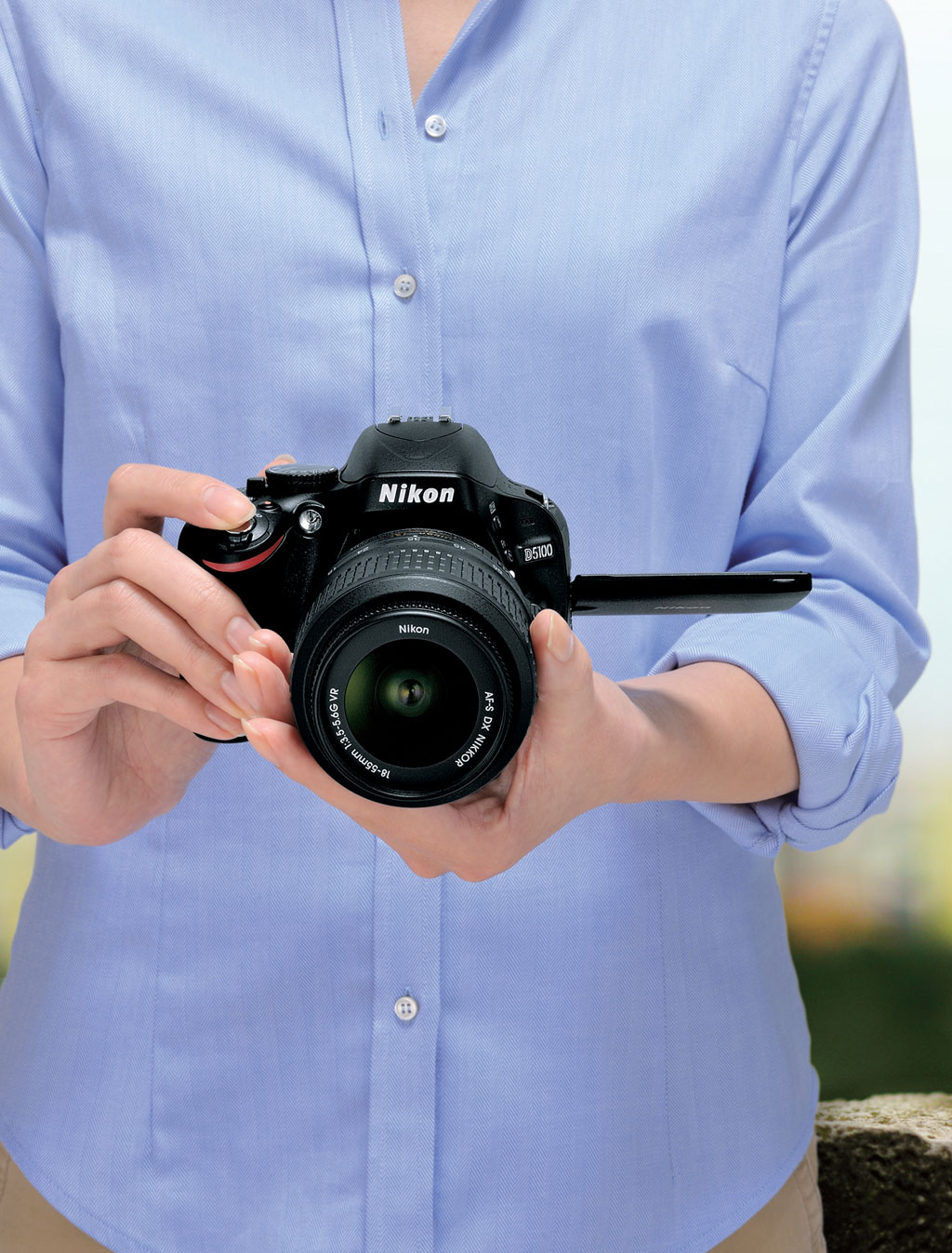 A D5100 a népszerű Nikon D5000 utóda, és dönthető LCD-monitorát is továbbfejlesztették. A képernyő most vízszintesen nyílik ki, ami nagyobb mozgásteret kínál még állvány használata esetén is. A szabad mozgathatóság páratlan kreativitást tesz lehetővé Élő nézet módban: gyakorlatilag bármely szögből lehet fényképezni a géppel. A készített képek és videók a korábbinál nagyobb részletességgel játszhatók vissza a nagy felbontású (kb. 921 000 képpont), 7,5 cm-es, széles megtekintési szögű monitoron.