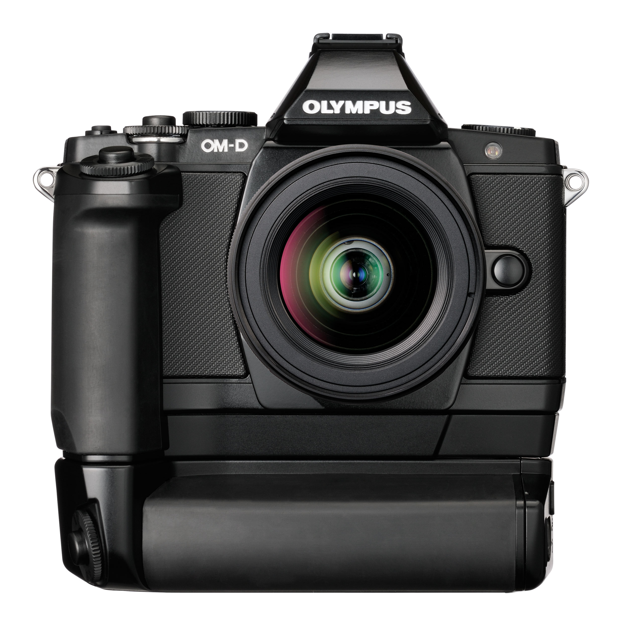 • HLD-6 akkumulátor markolat, az OM-D házának megfelelő por- és cseppálló kivitelben. Ez az innovatív, speciális, kétrészes markolat a tartást könnyítő tájképmarkolatként, illetve (a kiegészítő alkatrész segítségével) külön kioldó gombbal ellátott portrémarkolatként is használható. A portrémarkolat egy, az OM-D sajátját kiegészítő lítium-ion akkumulátort rejt magában, melynek alkalmazása jelentősen meghosszabbítja az egy feltöltéssel elérhető működési időt. A két akkumulátor együttes használatával két feltöltés között akár 650 képet is rögzíthetünk (a CIPA tesztelési normáinak megfelelően).