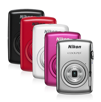 A COOLPIX S01 öt színben érhető el: ezüst, rózsaszín, vörös, fekete és fehér