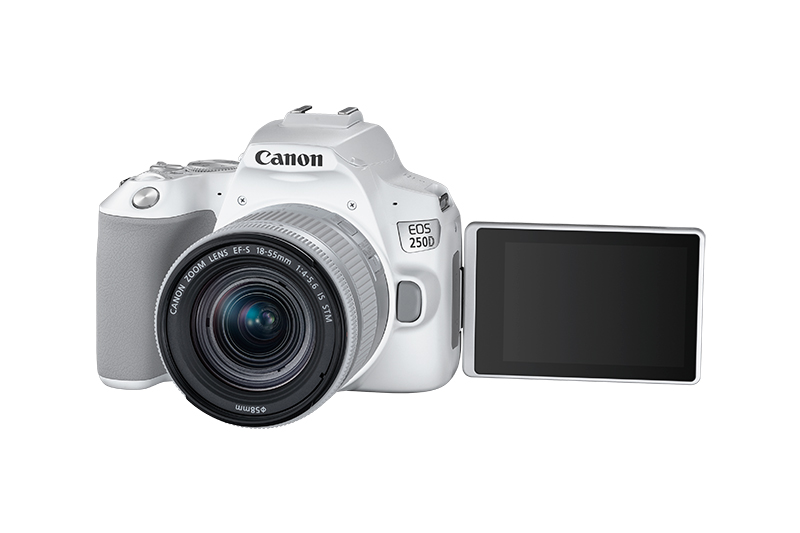 Az EOS 250D három színben: fekete, fehér és ezüst kivitelben készül, a Canon EOS világának része, mely több mint 80 világszínvonalú objektívvel, vakuval és kiegészítővel biztosítja az optimális választást a fényképező képességeinek bővítéséhez.